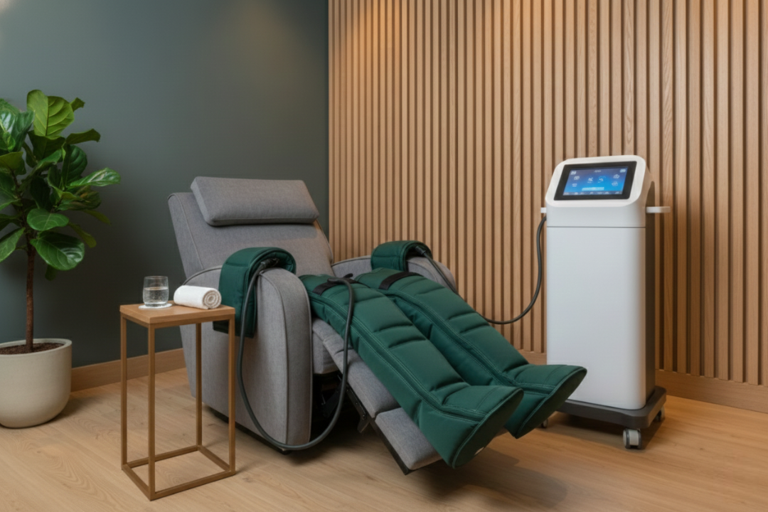 Compression Boot Therapy is a dynamic, recovery-focused treatment that uses air-powered compression sleeves to massage the legs and stimulate circulation. This treatment is commonly used by athletes, wellness clients, and post-surgical patients to support recovery, reduce swelling, and relieve fatigue.